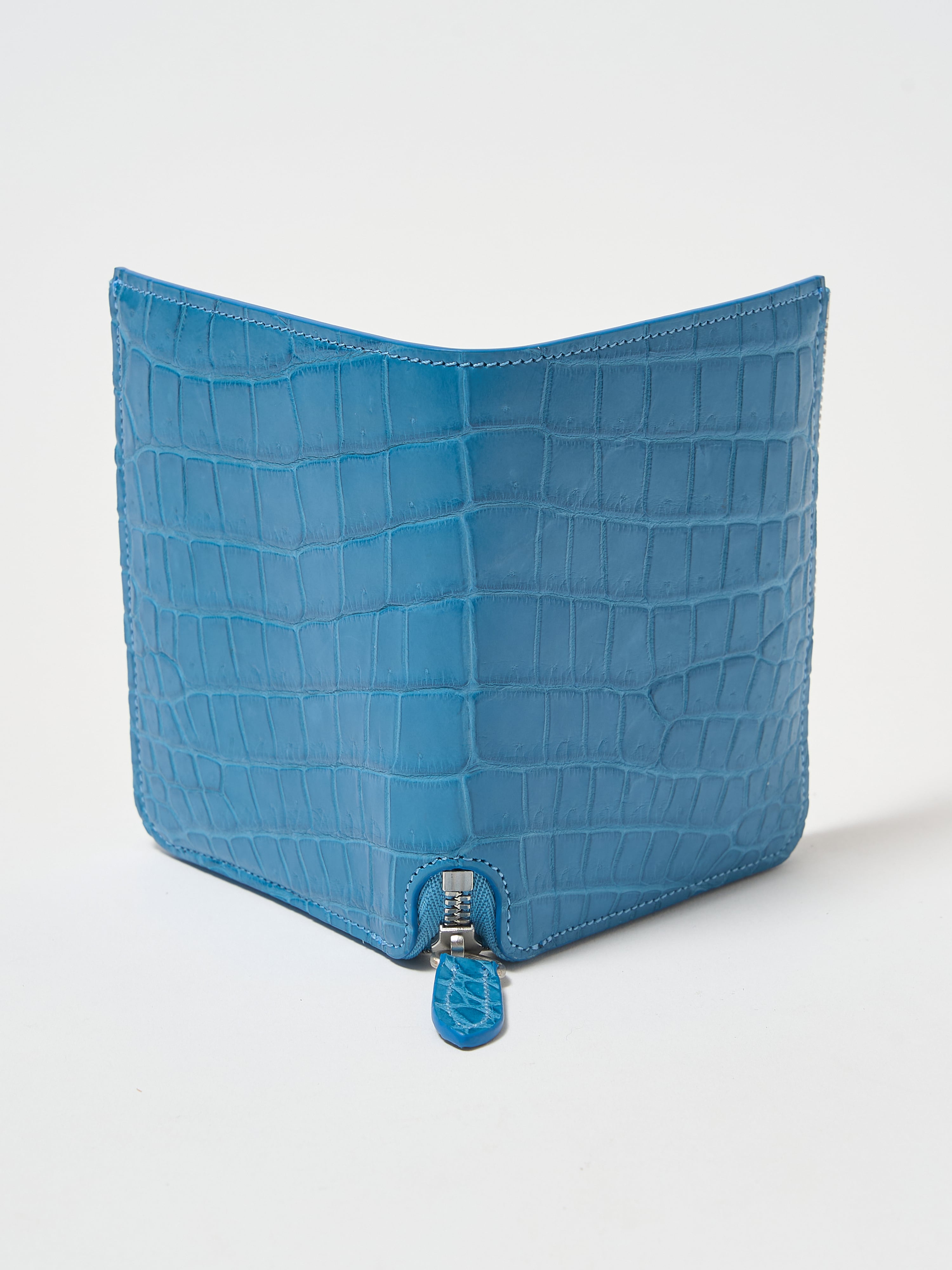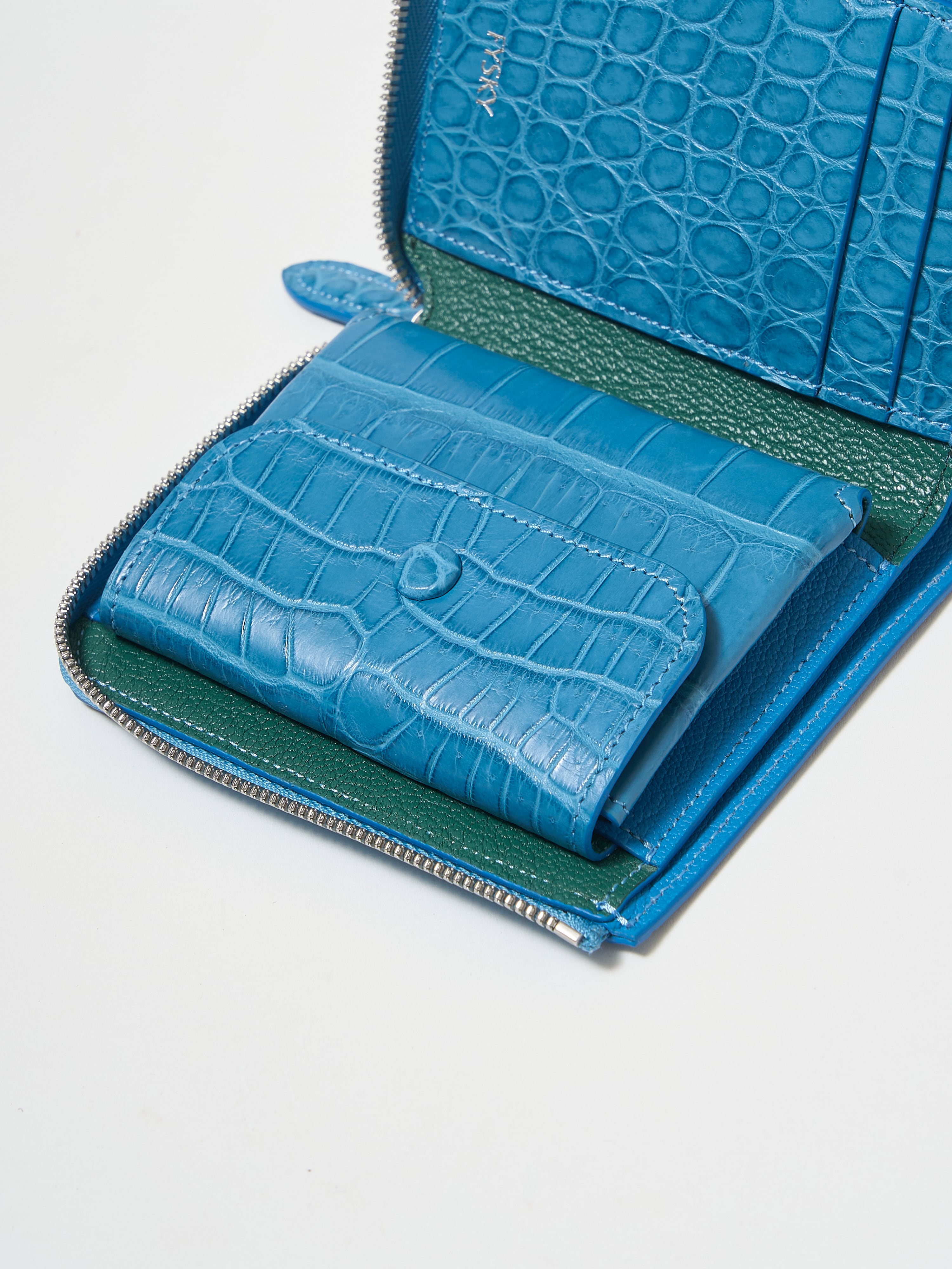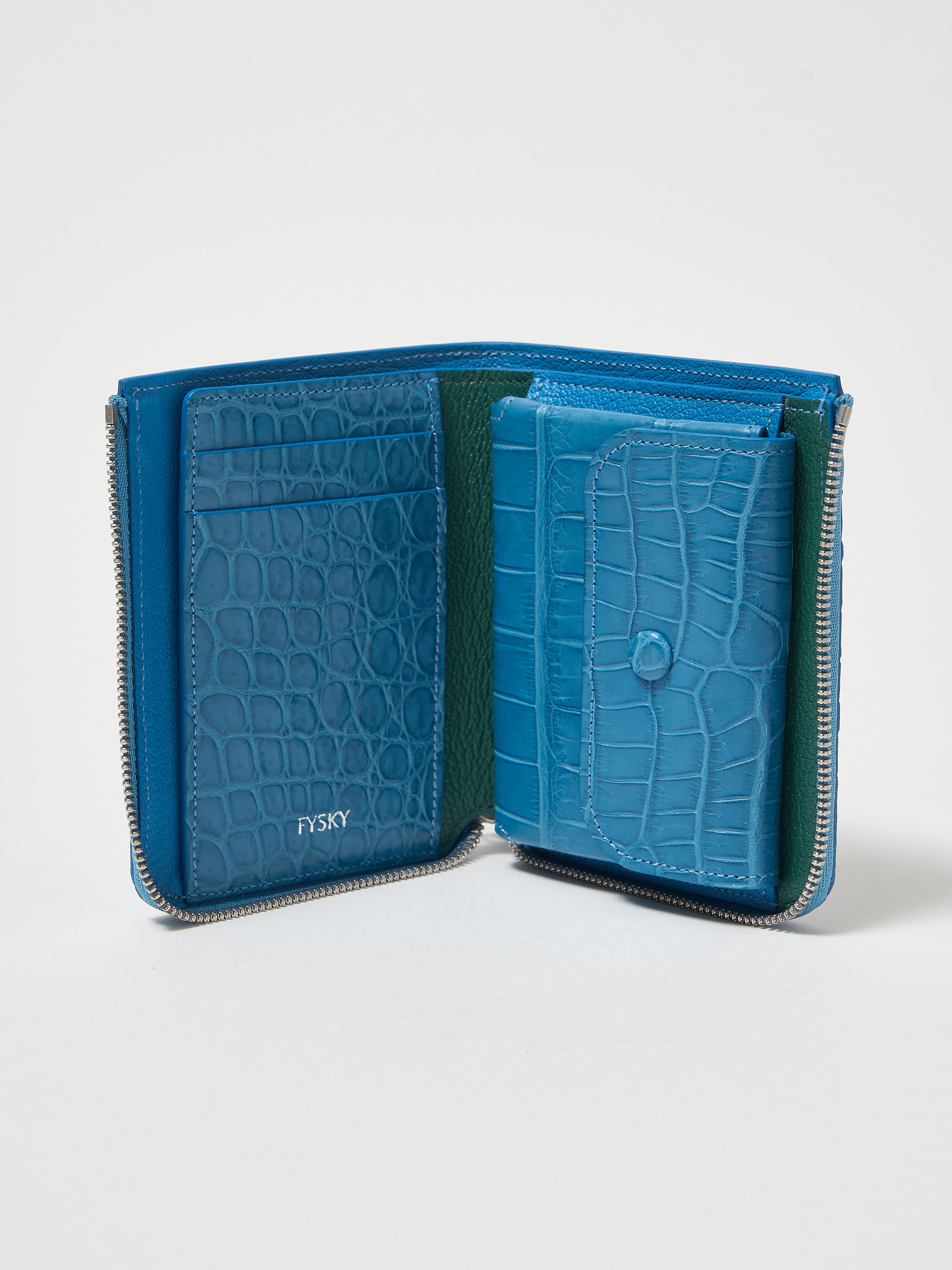 ワニ革の中でも最高級と言われているイリエワニ(ポロサス)のレザー。ポロサスの魅力は、細かく整った鱗模様。四角形の鱗は細かく美麗に揃い、横腹の丸い鱗とのバランスも絶妙です。希少性の高いエキゾチックレザーの代表であるワニ革の中でも「ポロサス」の占める流通量は全体の約7%と特に少なく、その中でも質の高いものの多くは真っ先に大手メゾンブランドに確保されてしまうため、一般への流通は非常に限られています。FYSKYでは革靴ブランドとして培ってきた関係値を活かし、信頼の出来る国内のタンナーから直接買い付けをおこなっています。